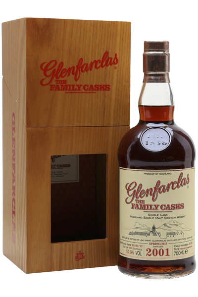 Σκωτσέζικο single malt ουίσκι από το Glenfarclas, εμφιαλωμένο ως μέρος της σειράς Family Cask. Aποστάχθηκε το 2001 και ωρίμασε σε ένα refill sherry butt μέχρι τον Ιούλιο του 2018, όταν εμφιαλώθηκε σε cask strength μορφή.